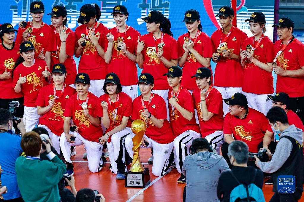 當日,在廣東江門舉行的2021-2022賽季中國女子排球超級聯賽冠軍爭奪戰第二場較量中,天津渤海銀行隊以3比0戰勝江蘇中天鋼鐵隊,從而以2比0的總比分奪得冠軍。